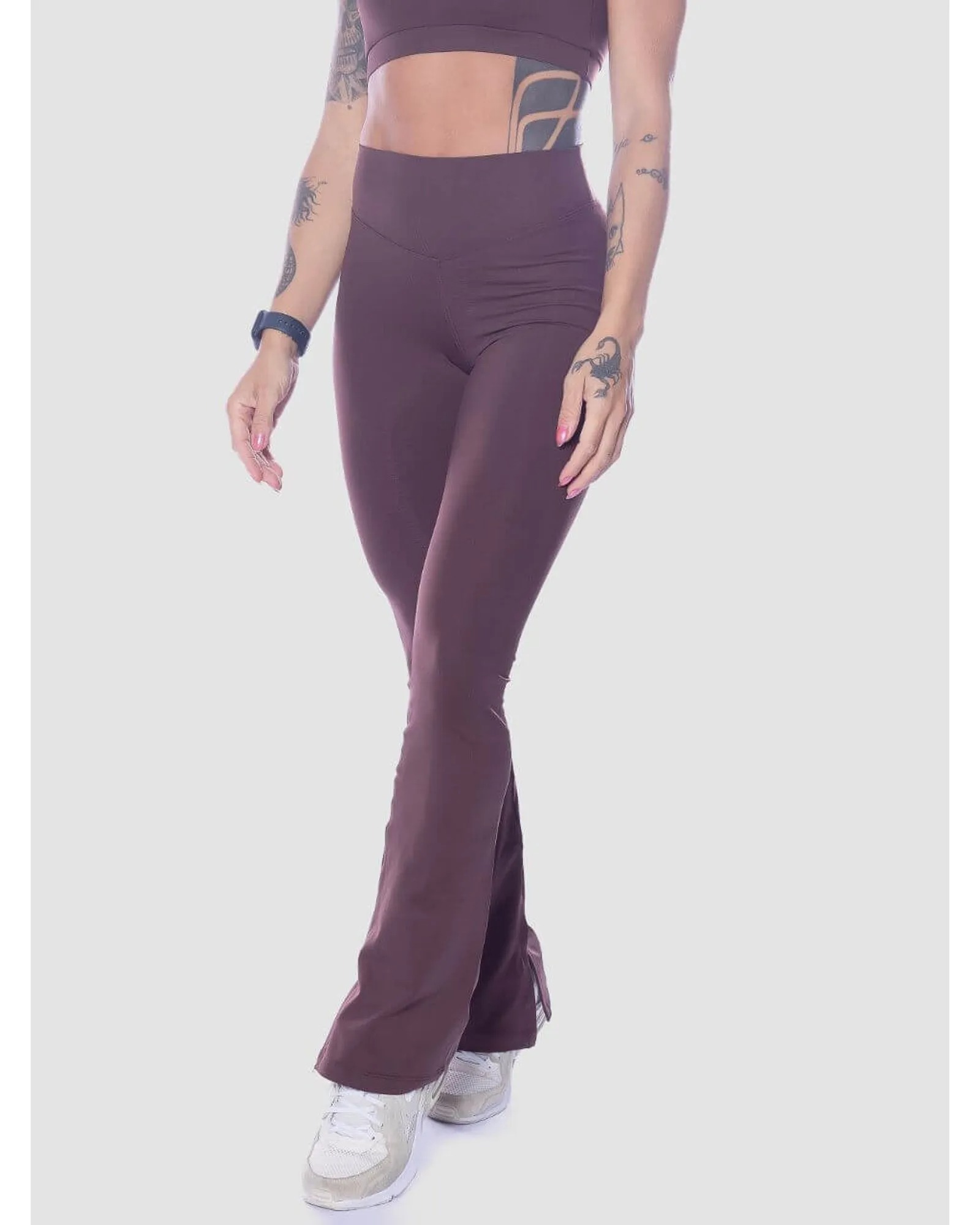 Não há nada mais moderno do que esta Calça Flare com abertura lateral- Marrom Fondue! Ela possui um design totalmente inovador além de muito conforto e estilo.
